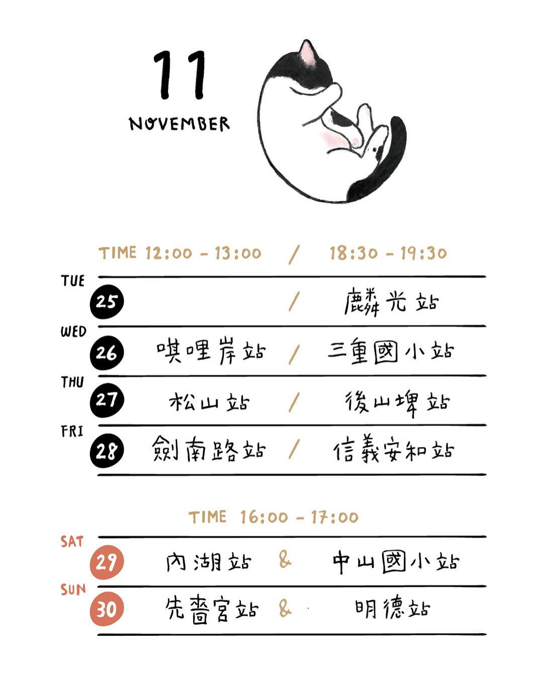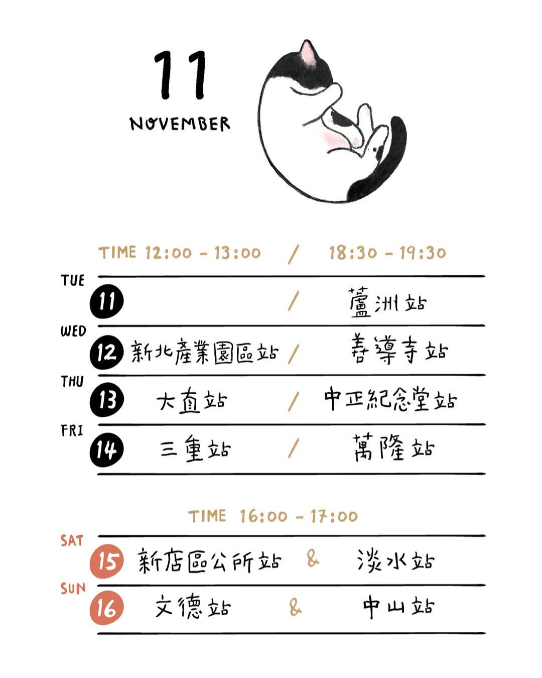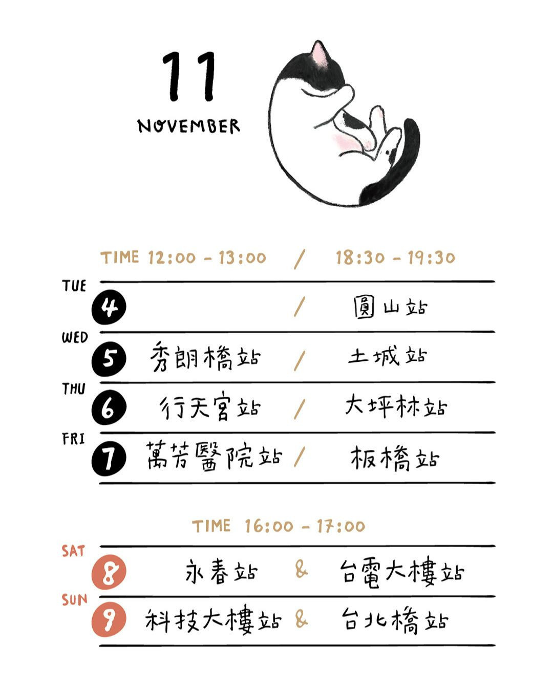 11/14 (五)|傍晚 18:30 - 19:30 萬隆 / 4號出口