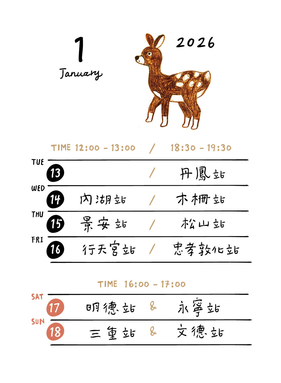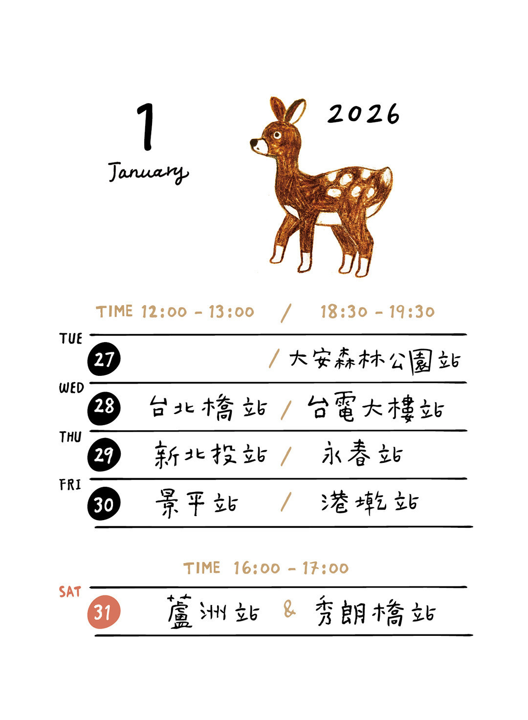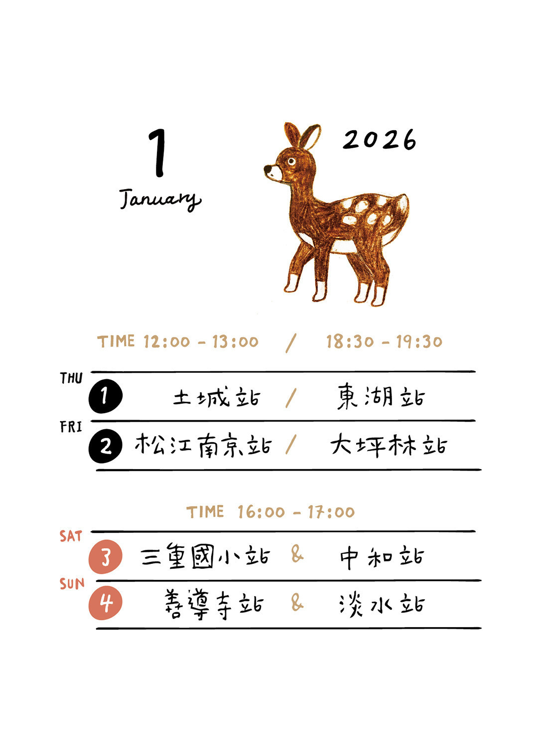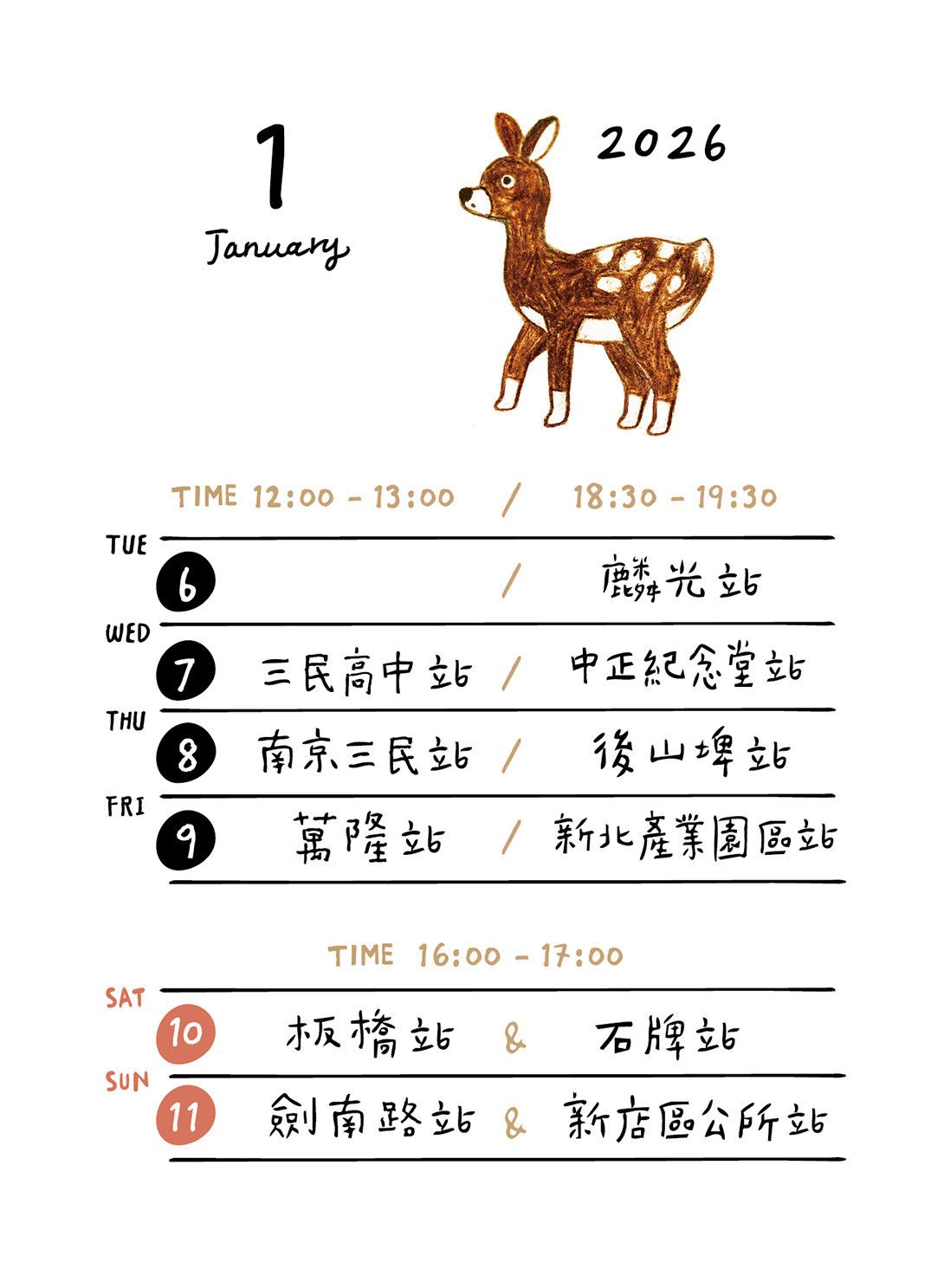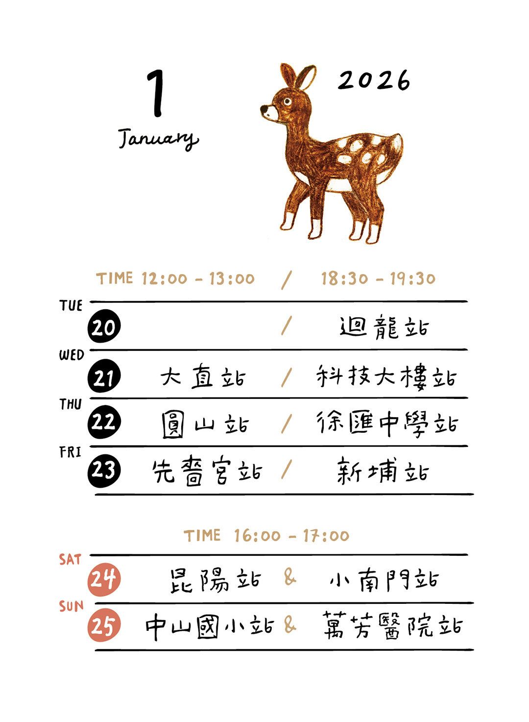 1/11 (日)|下午 16:00 - 17:00 劍南路 / 3號出口