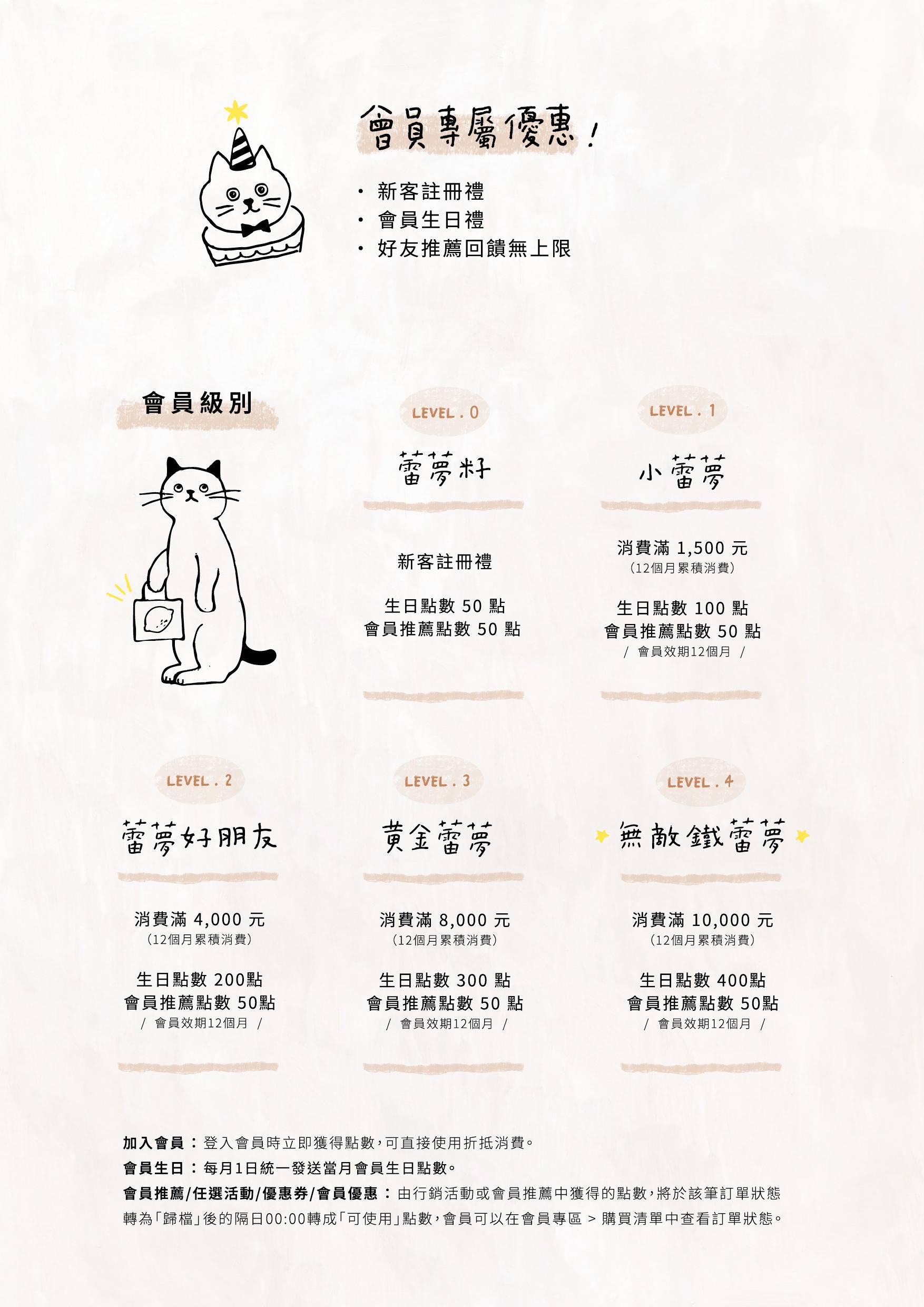 例:累積滿 1,500 元 → 成為【小蕾夢】🍋