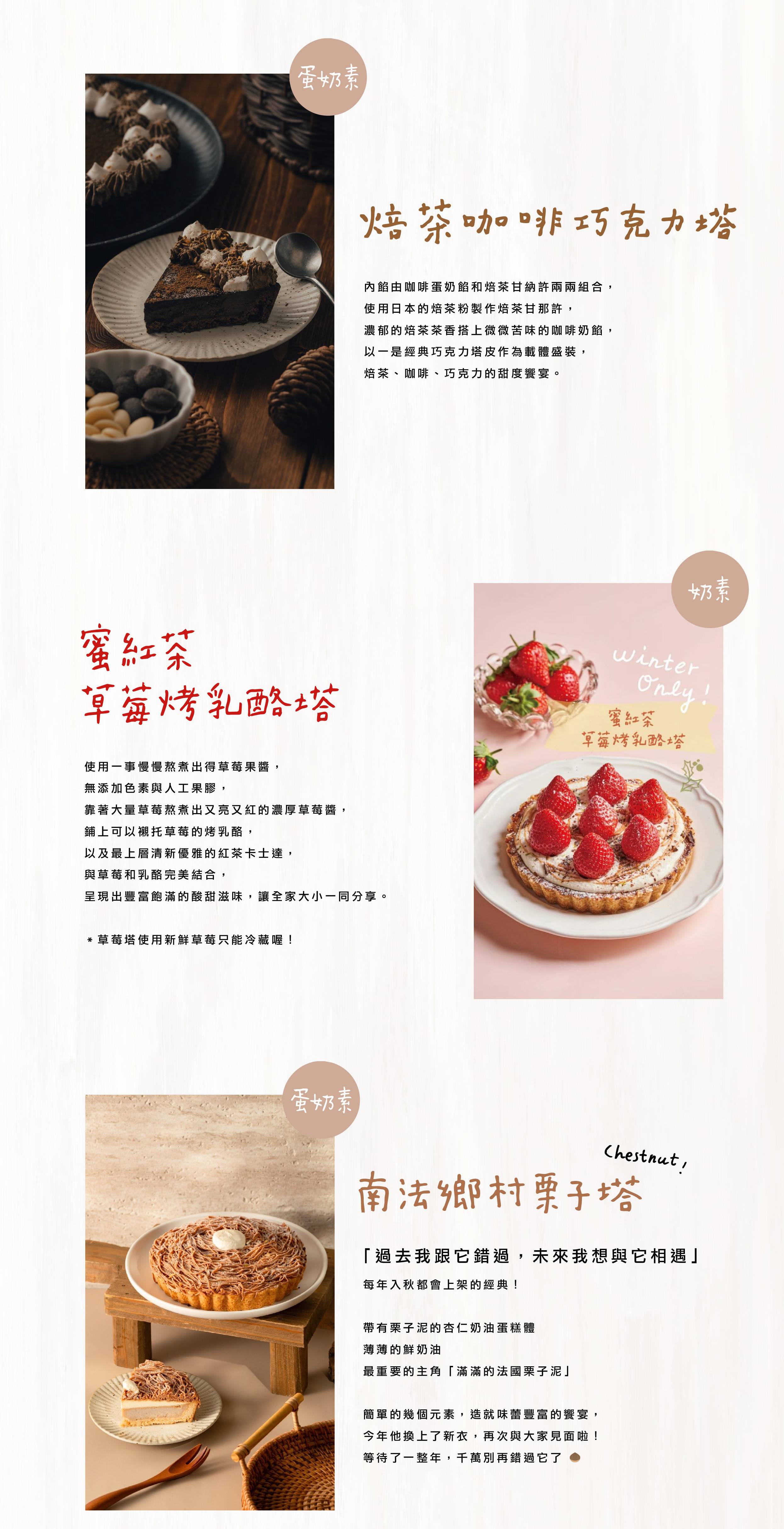 92折 | 檸檬塔 + 焙茶塔 + 巴斯克 + 酒香塔 |